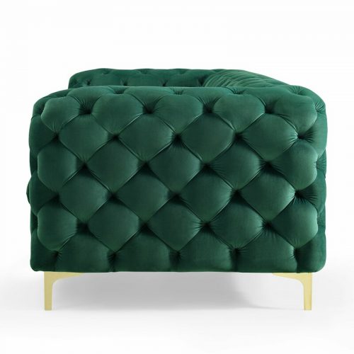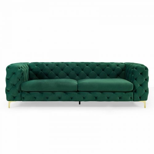 Give your living room the perfect chic modern and classic mid-century touch! Featuring blingy golden stainless steel feet and button-tufted velvet upholstery gives this cushion accent chesterfield sofa a modern yet classic look. Not only does this sofa add an air of high-class to your home, but it also provides a more comfortable place for you to lean against and lounge. It really is the superstar of your living room. Tips: This product will ship to you in three separate cartons. You may receive the rest soon when you just receive one carton.