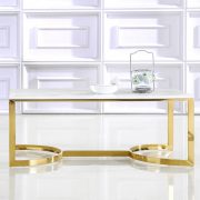 SMC FURNITURE Brings you a perfectly petite and undeniably elegant; this Marvel Coffee Table features a slim U shape style base in stainless steel finished in bright gold; supporting a stunning marble rectangle top
