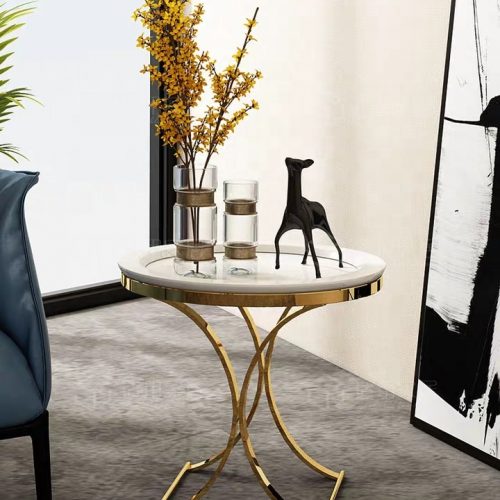 Material : Stainless Steel. Table Top : White artificial Marble Finish : Gold Diameter 18 inches