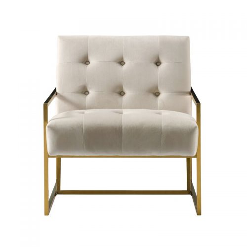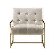 Unafraid of the spotlight, this Vistara Arm chair offers a trendy twist on bold, Regency style and brings fashion to the forefront of your favorite spaces. Its gold-finished frame is unmistakably glam and is made of stainless steel material, while button-tufted velvet upholstery ties the whole look together with a nod to traditional design. Offered a wide range of color options, the dimensions of the armchair is sure to suit your specific look.