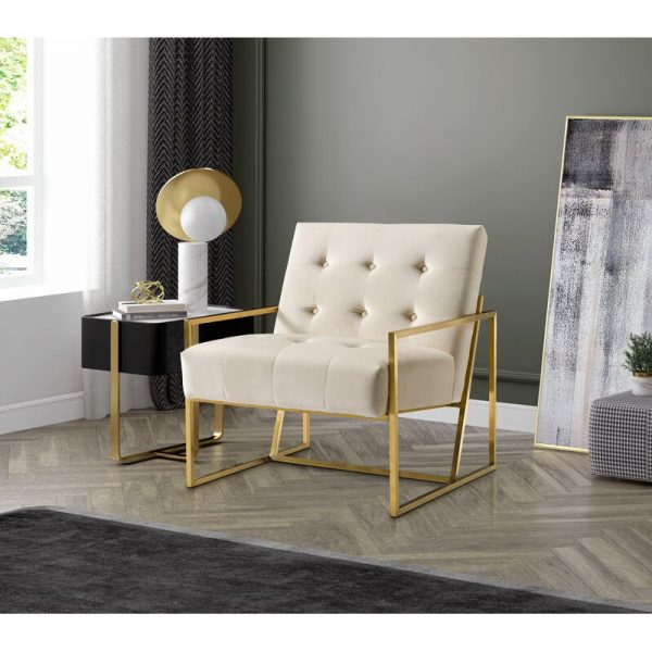 SMC FURNITURE VISTARA Arm Chair in Gold Finish (CREAM)