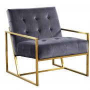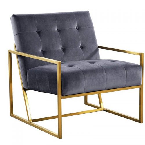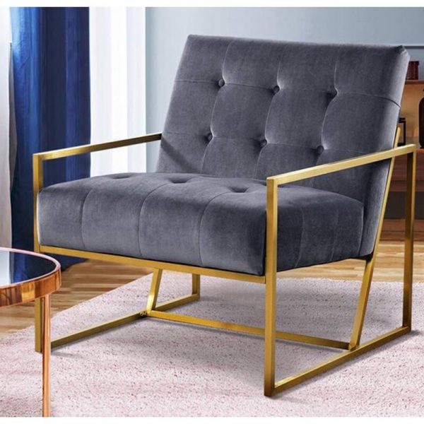 Unafraid of the spotlight, this Vistara Arm chair offers a trendy twist on bold, Regency style and brings fashion to the forefront of your favorite spaces. Its gold-finished frame is unmistakably glam and is made of stainless steel material, while button-tufted velvet upholstery ties the whole look together with a nod to traditional design. Offered a wide range of color options, the dimensions of the armchair is sure to suit your specific look.
