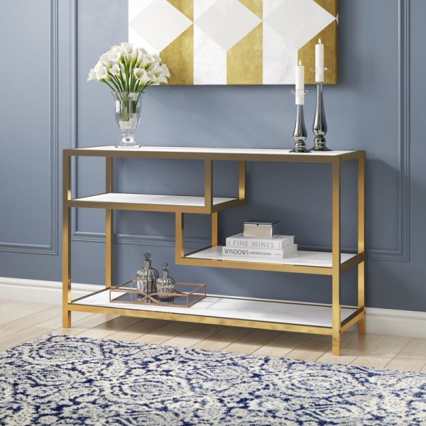 Create a brilliant style with this Roger console table and its geometric design, This is made of stainless steel with gold finish and marbles as the shelf material.the three-tier console’s sleek glam look creates the nordic style, which fits well with your personal taste and interior décor, without sacrificing functionality and practicality at meanwhile. Whether used as a TV console stand table in the living room or as an entryway console table in the foyer, a coffee table in the house or serving stand in the kitchen. This table is perfect for holding everyday belongings and cuts clutter in your home.